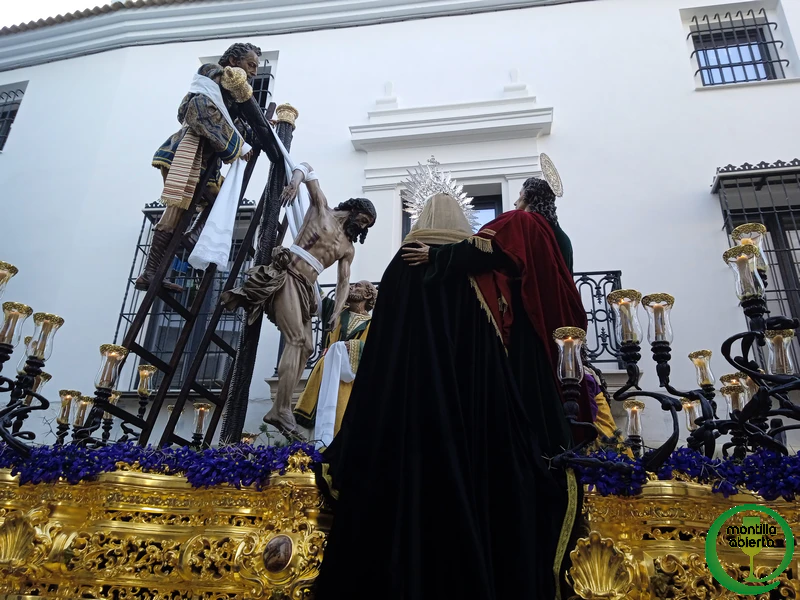 ICONOGRAFÍA: Todo el misterio es obra del imaginero cordobés d. Antonio Bernal Redondo. La imagen de Nuestro Señor Jesucristo en su Sagrado Descendimiento fue bendecida en 1994 mientras que las imágenes de María Santísima de la Encarnación y de San Juan Evangelista fueron bendecidas en 1995. El resto del misterio se incorporó en 1996 los Santos Varones Nicodemo y José de Arimatea y en 1999 la imagen de María Magdalena.
