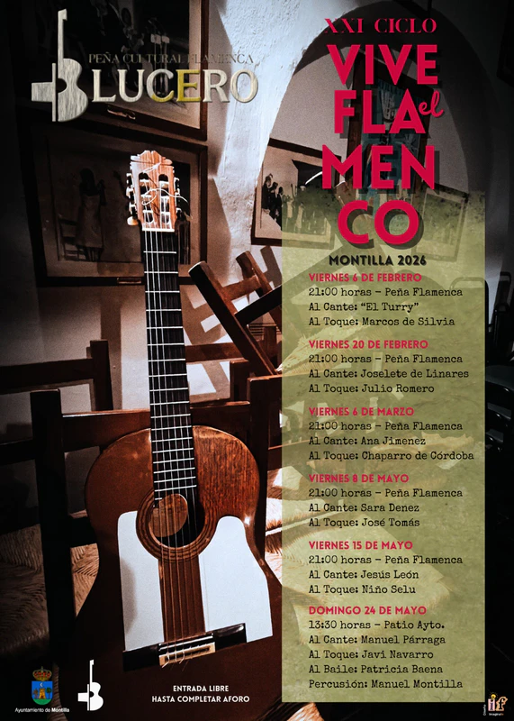 El programa del XXI Ciclo Vive el Flamenco es el siguiente: Viernes 20 de febrero, 21:00 horas. Peña Cultural Flamenca El Lucero. Al cante: Joselete de Linares. Al toque: Julio Romero. Viernes 6 de marzo, 21:00 horas. Peña Cultural Flamenca El Lucero. Al cante: Ana Jiménez. Al toque: Chaparro de Córdoba. Viernes 8 de mayo, 21:00 horas. Peña Cultural […]