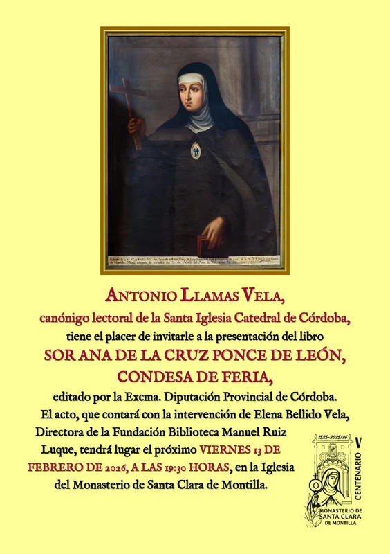 D. Antonio Llamas Vela, canónigo lectoral de la Santa Iglesia Catedral de Córdoba, presenta este viernes su libro Sor Ana de la Cruz Ponce de León, Condesa de Feria, editado por la Excma. Diputación Provincial de Córdoba. El acto, que contará con la intervención de Elena Bellido Vela, Directora de la Fundación Biblioteca Manuel Ruiz […]