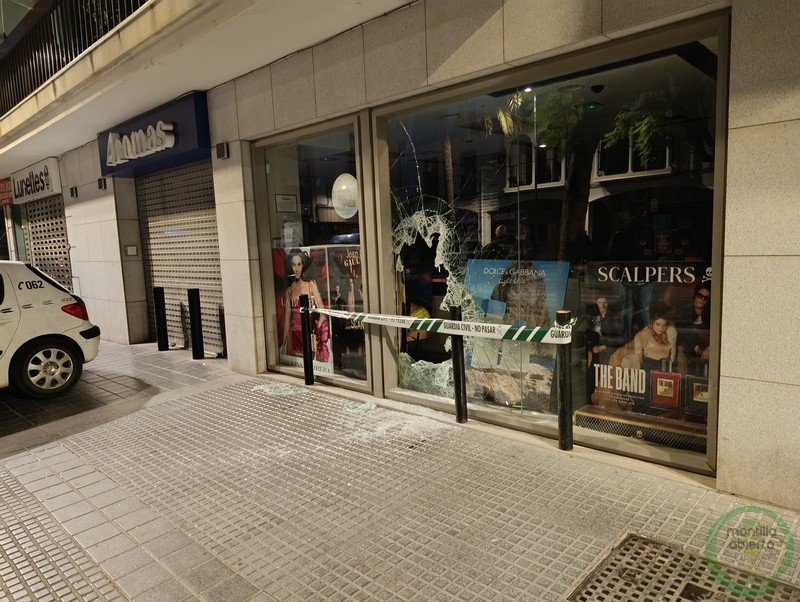A eso de las 3 de la mañana los ladrones bajaron de varios vehículos y con una maza reventaron el cristal de seguridad. De los seis delincuentes, cinco entraron a toda prisa cargados con bolsas de rafia, para llevarse un importante botín en productos de primeras marcas.