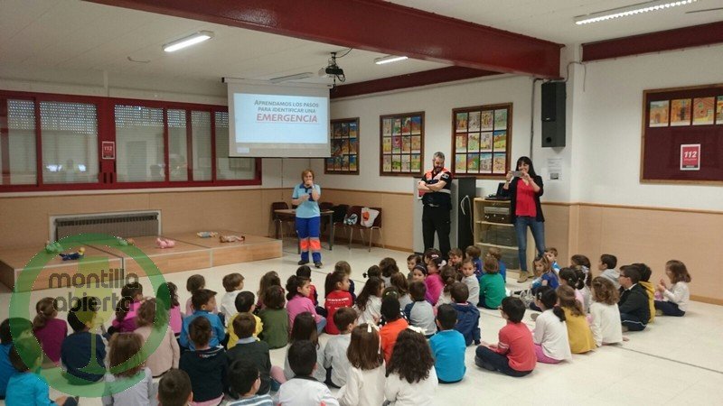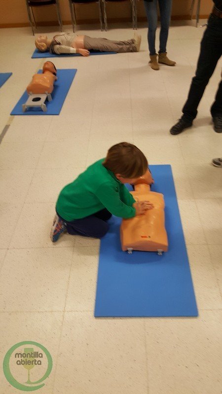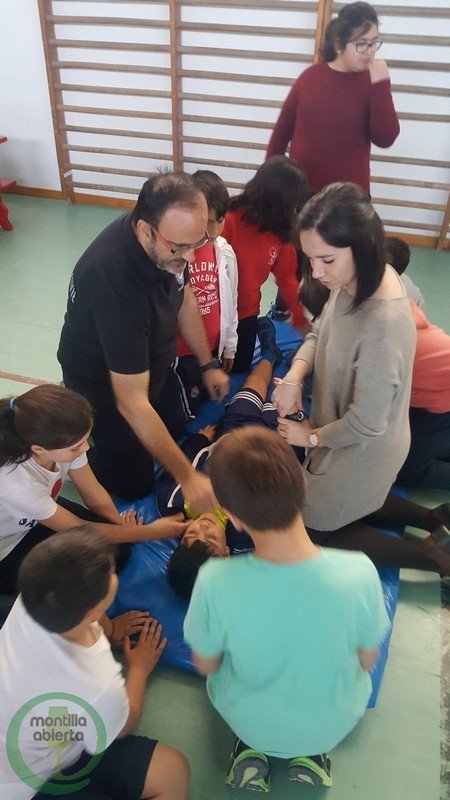 Cerca de 100 alumnos del IES Gran Capitán de Montilla de edades comprendidas entre los 5 y 10 años ha participado en un taller de RCP y otro de peligros en la cocina en los que los pequeños estuvieron muy entretenidos y atentos a las explicaciones del nutrido grupo de profesionales que se dieron cita en las instalaciones del Gran Capitán.