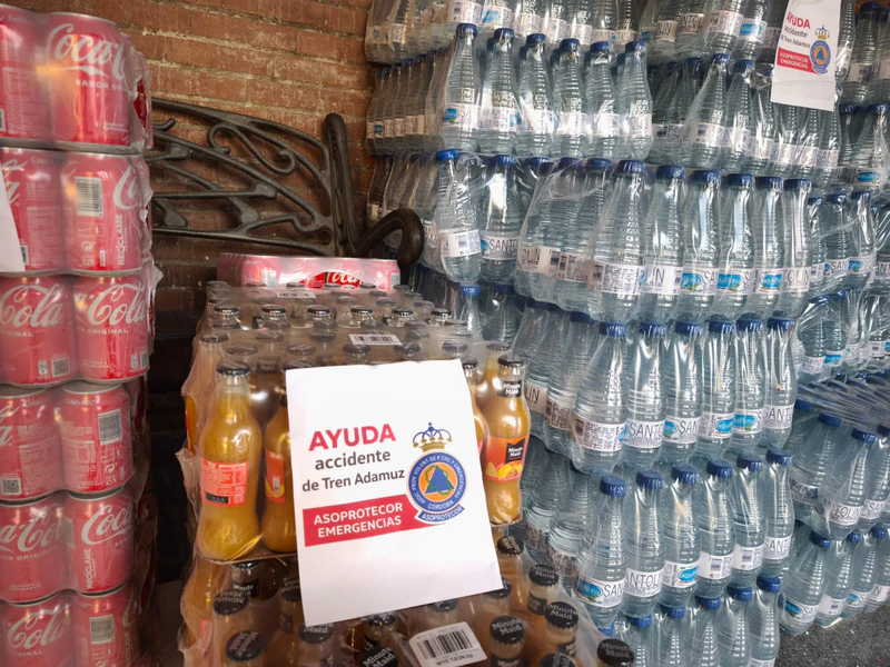 Dentro de esa tesitura, el pasado lunes un contingente de voluntarios de Asoprotecor Emergencias Córdoba se desplazó hasta Adamuz para llevar agua, zumos y refrescos gracias a la generosa donación por Coca-Cola Europacific Partners en Córdoba.