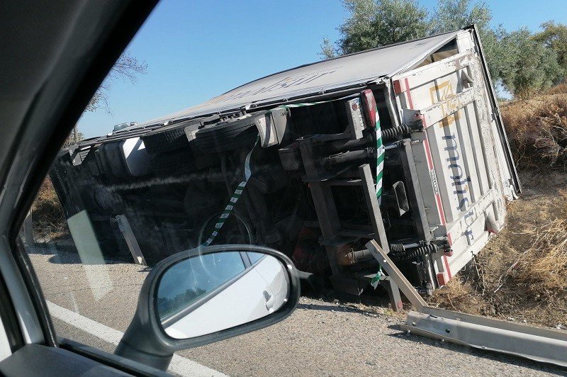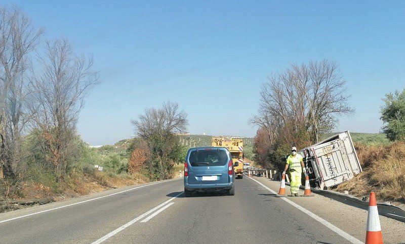 Al accidente se ha personado inmediatamente la Guardia Civil de Tráfico y los operarios del servicio de mantenimiento de carreteras para la correcta señalización del camión volcado.