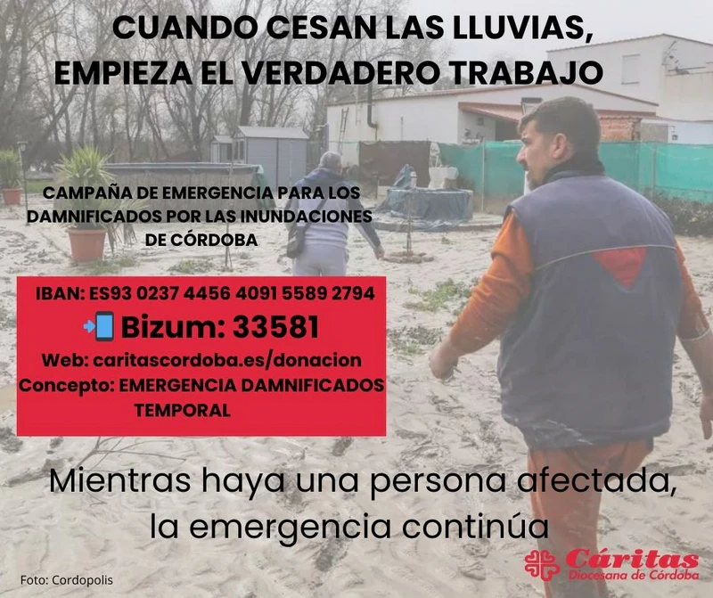 Ante esta situación y a la espera de la evaluación de los daños, “Cáritas Diocesana de Córdoba ha activado una campaña solidaria con el objetivo de atender necesidades básicas, apoyar la reparación de viviendas, reforzar el reparto enseres del hogar y acompañar a las familias que han perdido su medio de vida” ha puntualizado Reina.