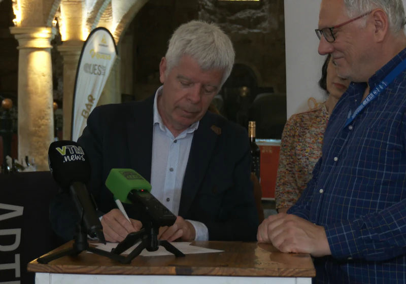 Por parte de Aquesart suscribieron el acuerdo Mónica Trujillo y Juan Carlos Lobo. En representación de la Asociación Cultural Vino en Rama firmaron su gerente, Cristóbal Luque, y su presidente, Francisco Robles, junto a representantes de las cuatro bodegas participantes en esta edición: Bodegas Doblas, Lagar Los Raigones, Bodegas Arrabal Rodríguez y Bodegas Robles.