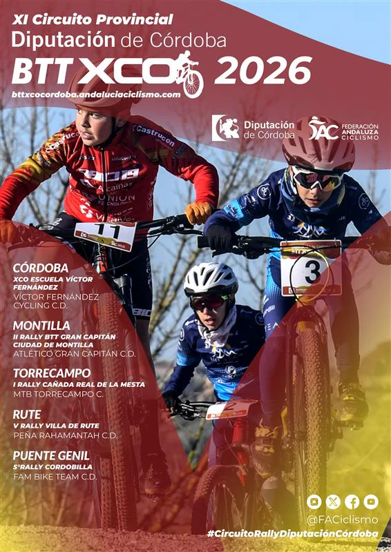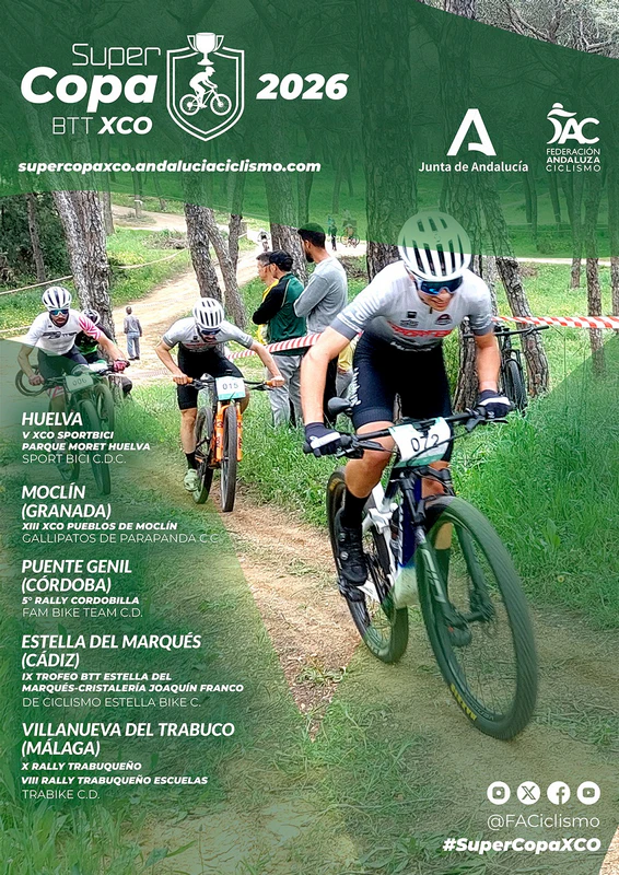 Política de devolución de inscripciones: ver normativa de la competición. Para poder participar en esta prueba debe adquirir el dorsal «único» de Supercopa de Andalucía de BTT XCO 2026, que podrá adquirir al inscribirse en las pruebas (2€). Para esta prueba no es válido el dorsal único del Circuito Diputación de Córdoba 2026.