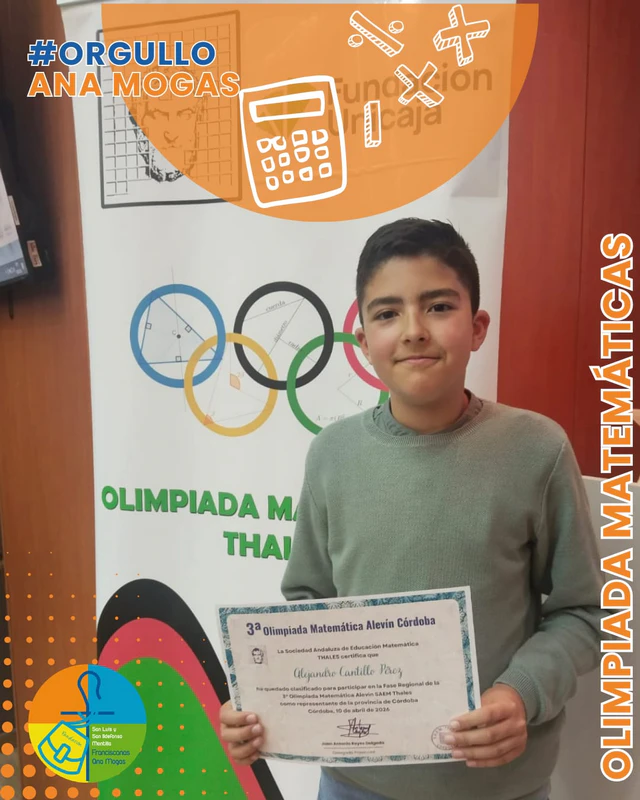 Alejandro Cantillo Pérez, alumno del Colegio San Luis y San Ildefonso de Montilla, ha sido clasificado para la Fase Regional de la Olimpiada Matemática Alevín (SAEM Thales) como representante de la provincia de Córdoba.