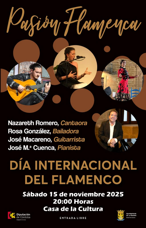 Música favorite_border iCal Export Google Calendar Outlook 365 Outlook Live 15 Nov 08:00 PM Until 15 Nov, 11:30 PM 3h 30m Pasión flamenca Casa de la Cultura de la Rambla Details Map Weather Other Events Casa de la Cultura de la Rambla No address found No data found. El Área de Cultura del Ayuntamiento de … Sigue leyendo Pasión flamenca