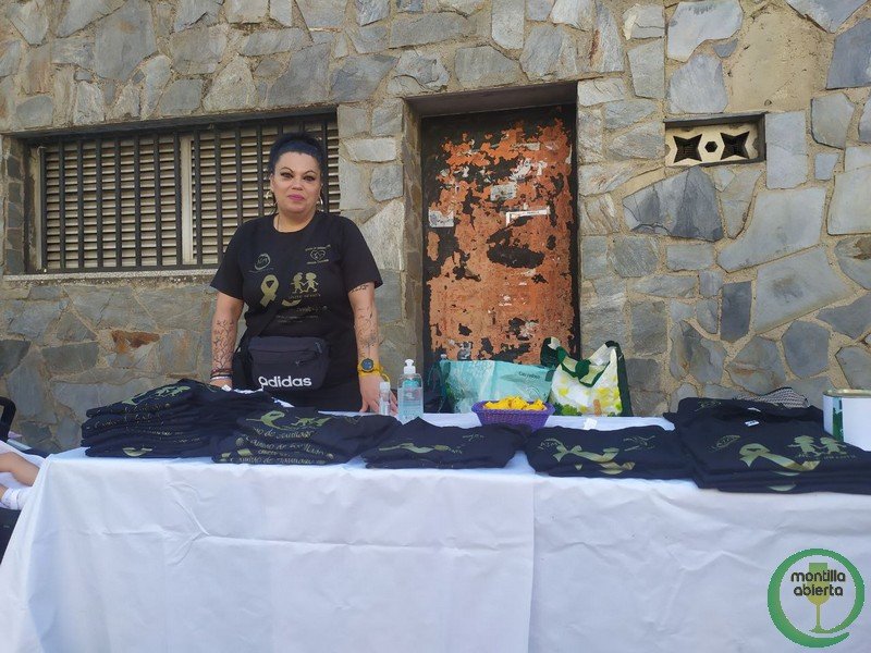 Por ello, todos los lunes instala una mesa solidaria en la puerta del Centro de Salud de Montilla donde vende camisetas y pulseras a beneficio de la Asociación contra el Cáncer Infantil de Córdoba.