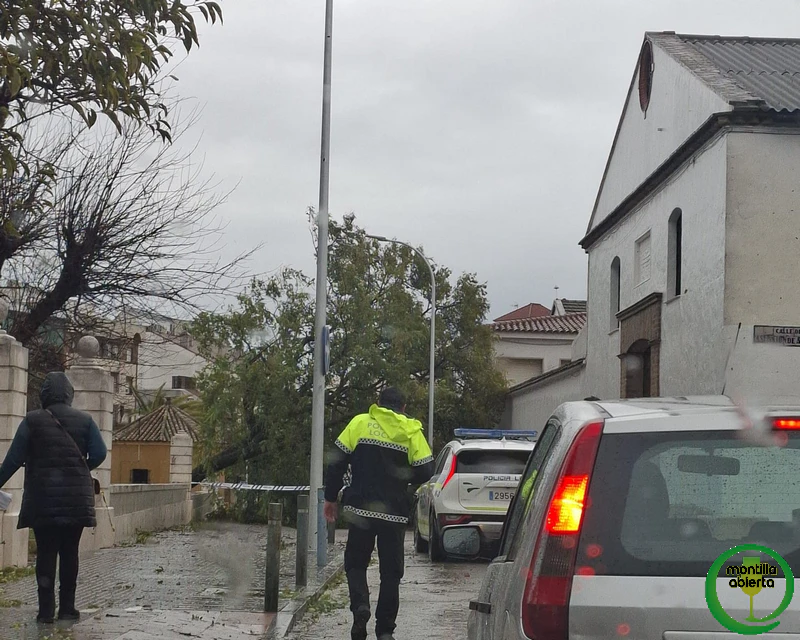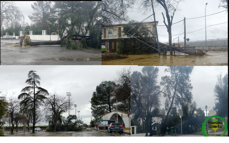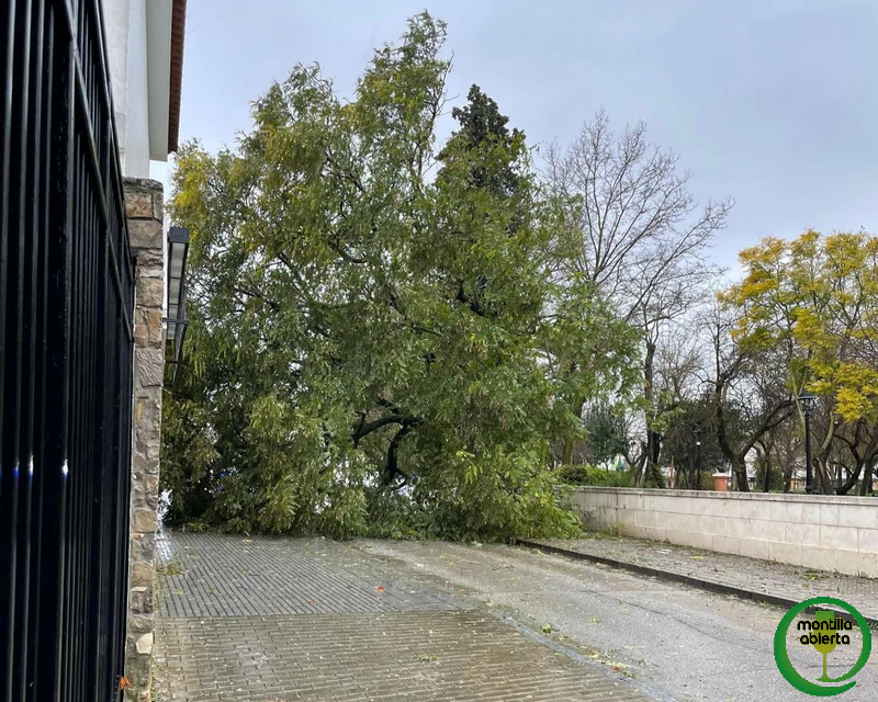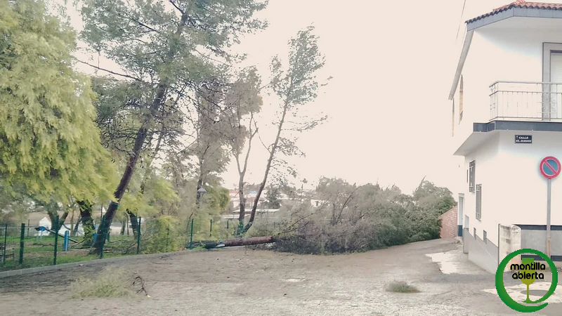 La fuerza del viento del temporal que estamos sufriendo, hace que pasar por cualquier zona con arboleda de Montilla se convierta en un ejercicio de riesgo permanente.