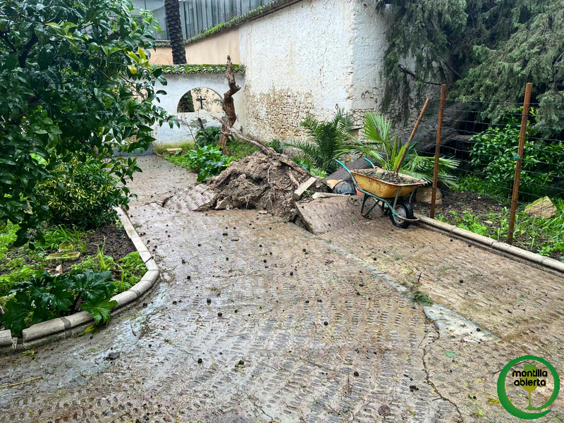 En la tarde de ayer los jardines y patios de Santa Clara se vieron afectado por la virulencia del viento quque yha dejado arboles, tejados y techadillos afectados dejando numerosos daños materiales, pero gracias a Dios, ninguno personal.