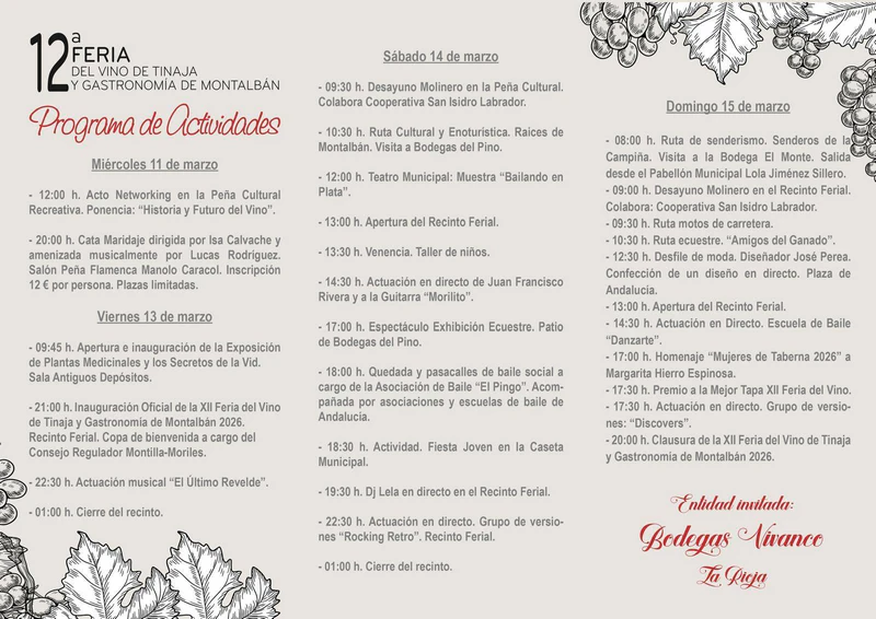 “En esta ocasión, nuestra Feria del Vino de Tinaja se acompaña de un amplio programa de actividades en el que cobrará protagonismo nuestro desayuno molinero, además de contar con visitas guiadas a nuestro centro histórico y a empresas agroalimentarias, exhibiciones ecuestres y una ruta senderista”, ha concluido Ruz.