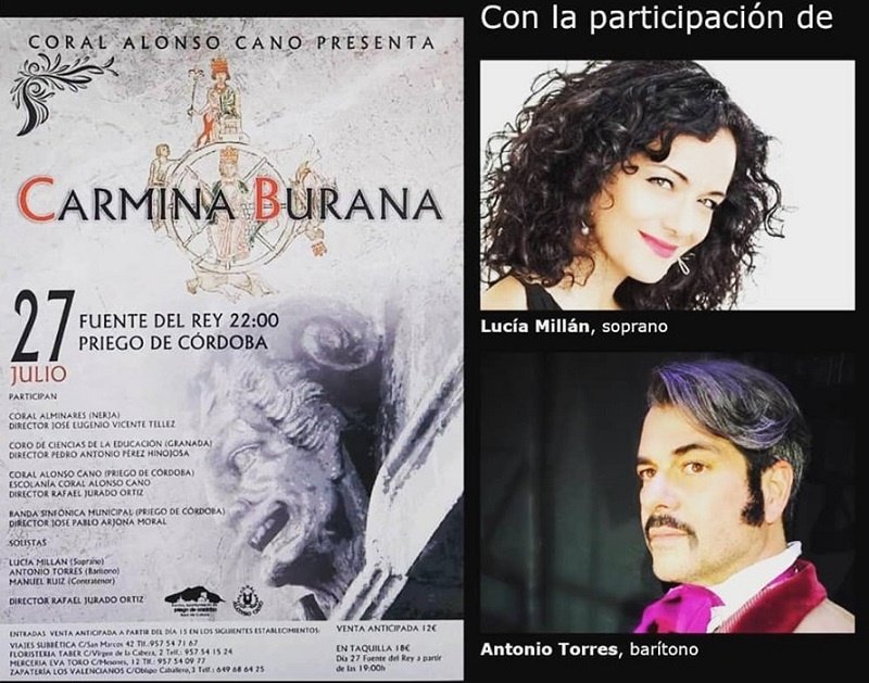 La soprano montillana Lucía Millán actuará en la obra Carmina Burana, en el marco incomparable de la Fuente del Rey de la cercana localidad de Priego de Córdoba.