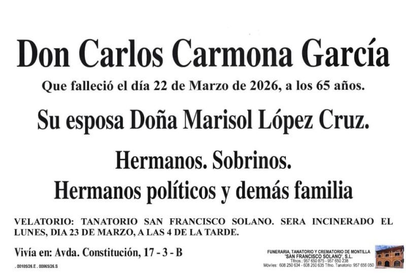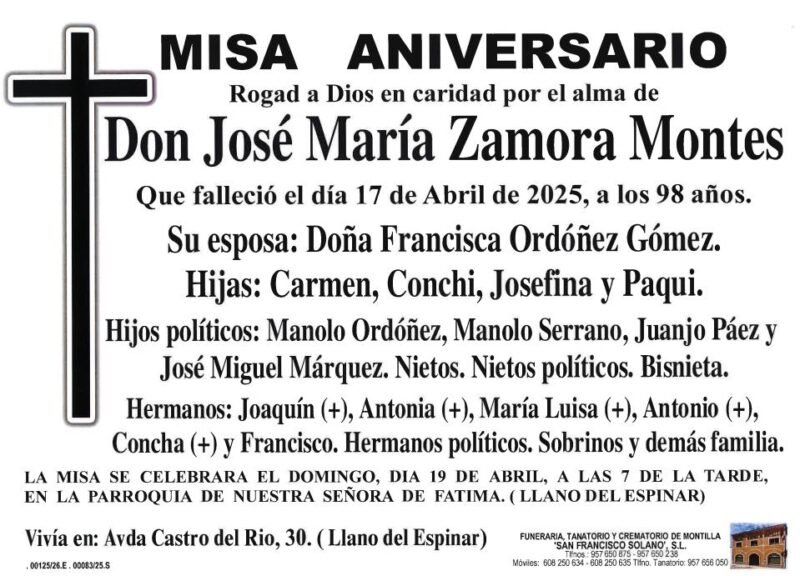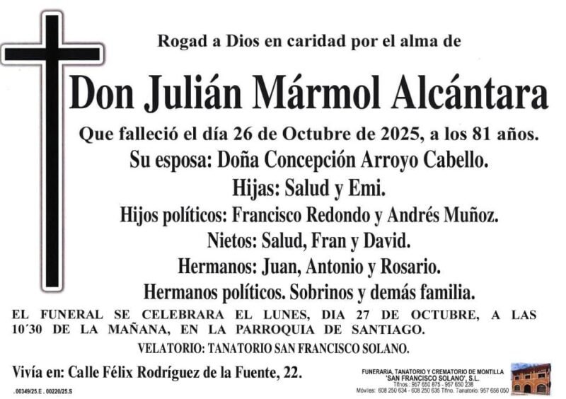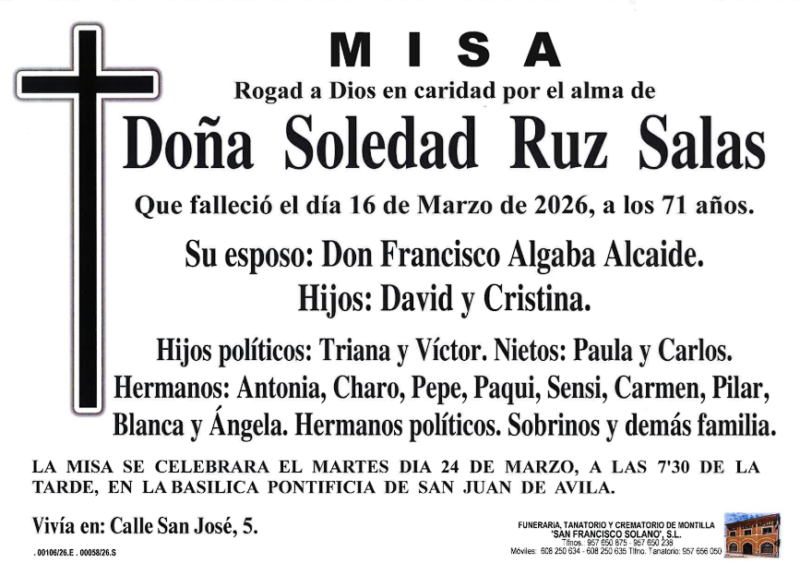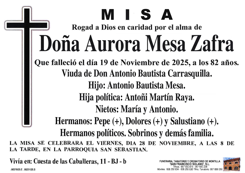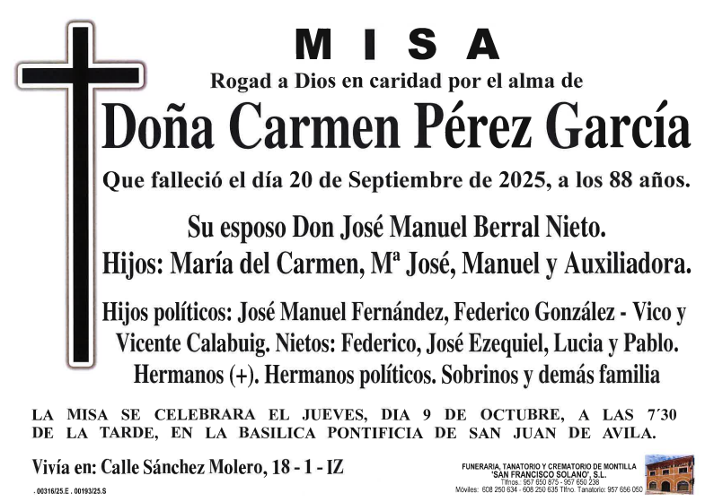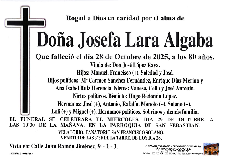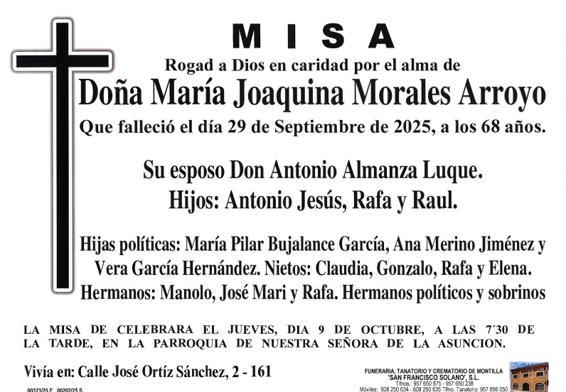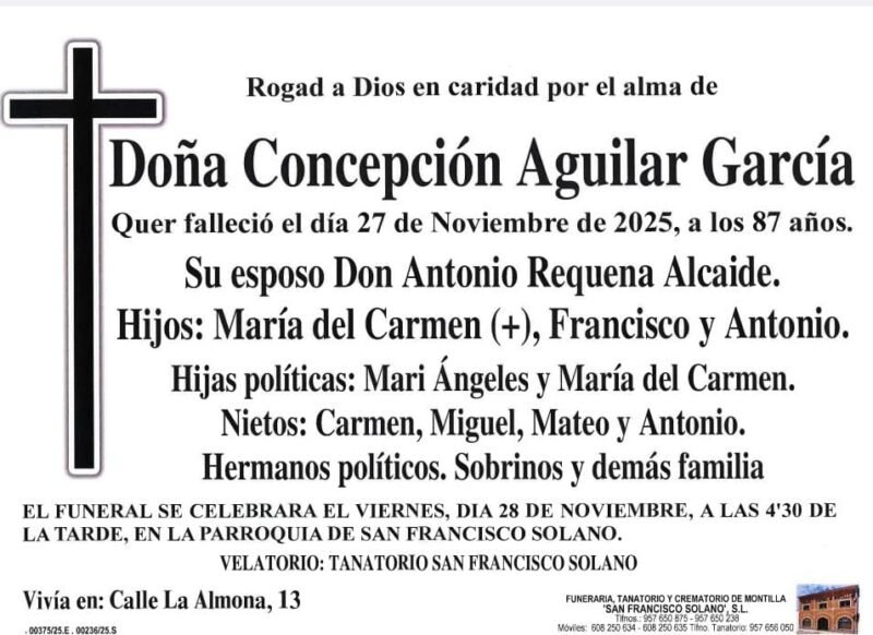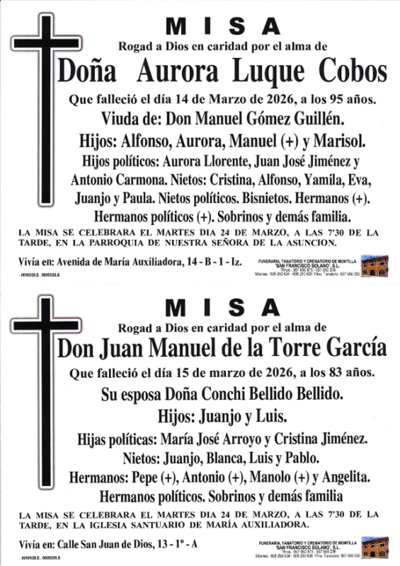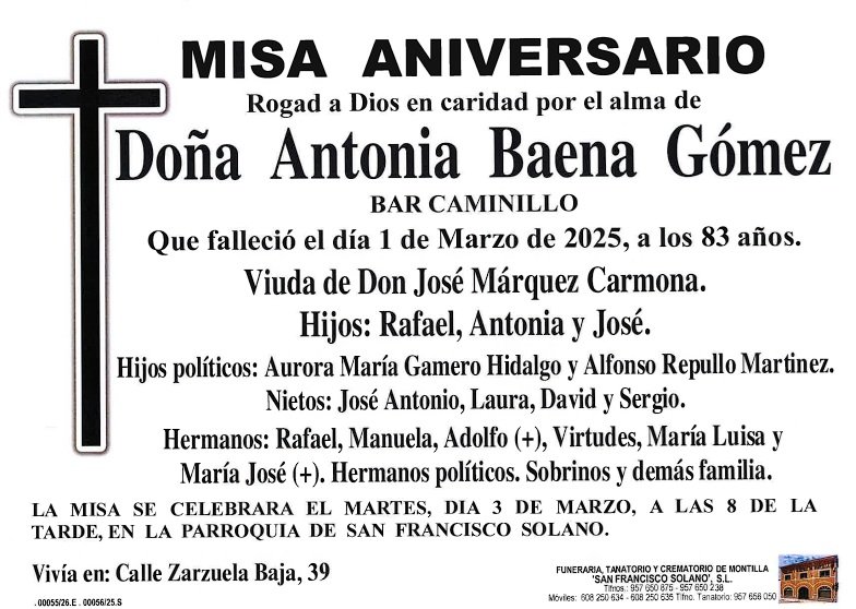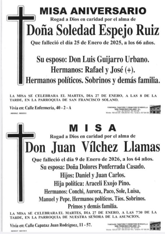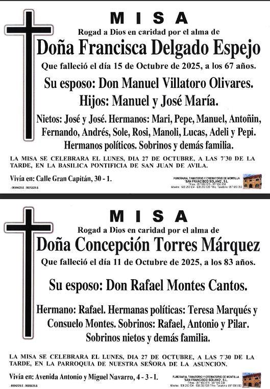 Sección de Montilla Abierta para informarte de los últimos fallecimientos y misas de Montilla. D.E.P.