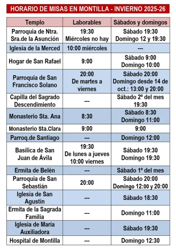 Aquí os ofrecemos el Horarios de Misa en Montilla vigente Navegación de entradas Eureka te invita a su jornada de puertas abiertas Lleno absoluto en la presentación del CDF Paquillo Moreno