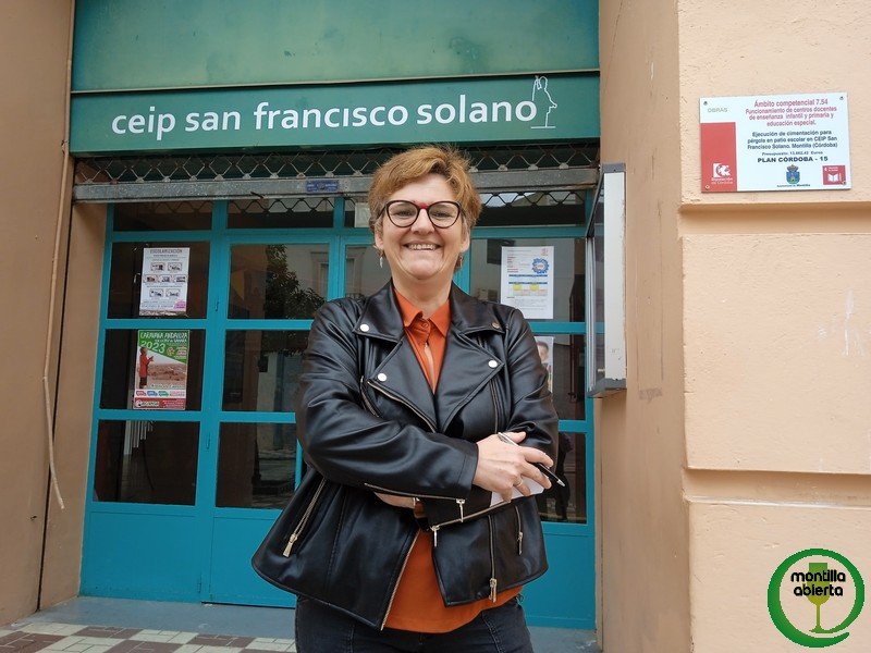 Eva Rodríguez, madre de usuario afectado, encabeza esta protesta para reivindicar a la Delegación Territorial de Desarrollo Educativo, Formación Profesional, Universidad, Investigación e Innovación de Córdoba que ponga orden ante la deficiente cantidad de comida que Mediterránea catering ofrece en el CEIP San Francisco Solano .