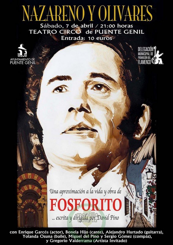 El sábado 7 de abril, a las 21:00 h., se reestrena en el Teatro Circo de Puente Genil la obra Nazareno y Olivares, una aproximación a la vida y obra del maestro ponteño Antonio Fernández Díaz «Fosforito» , que estará presente durante la representación. «Nazareno y Olivares» es una dramaturgia en clave flamenca en la que a través de la palabra, … Sigue leyendo Reestreno de «Nazareno y Olivares», aproximación a la vida y obra de Antonio Fernández Díaz «Fosforito»