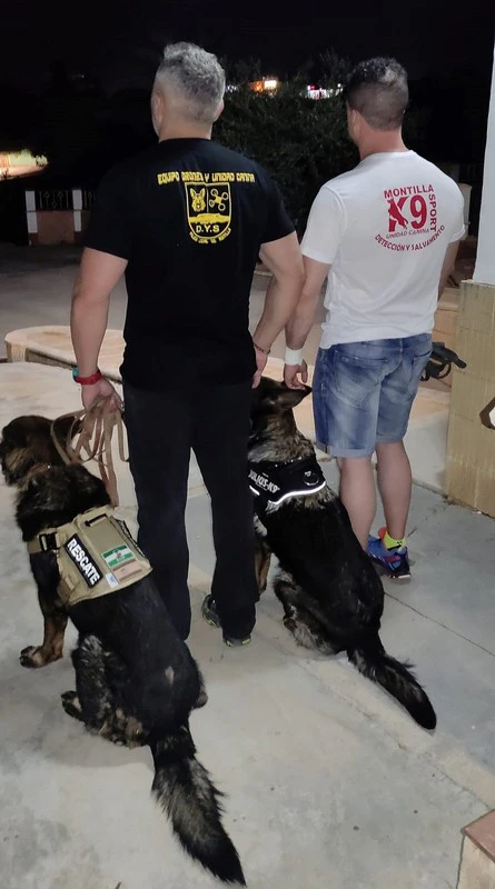 Efectivos de la Policía Local, Guardia Civil, Policía Nacional, Servicio de Extinción de Incendios y Salvamento (SEIS) y Protección Civil se dispusieron de inmediato en acción en el dispositivo especial de búsqueda, siendo a las 18.20 h de la tarde cuando fueron activados dos Guías y 4 perros (2 de rastro y 2 de GA) de la Unidad Canina Montilla K9 Sport y de la Unidad Canina de Detección y Salvamento de la Policía Local de Montilla.